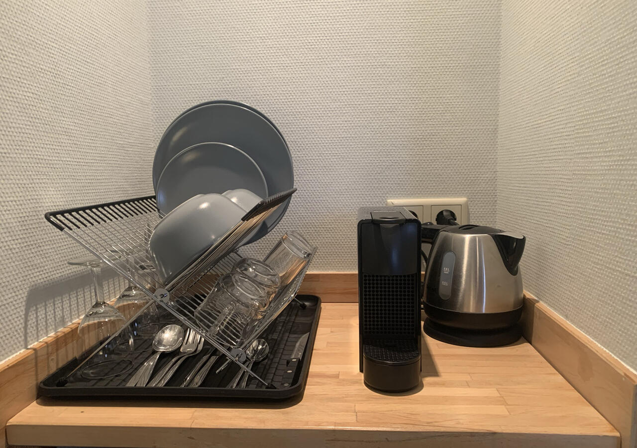 B&B Borkum has one double box-spring bed with hypoallergenic duvets and a wardrobe. There is also a refrigerator and a sitting area with a TV, as well as a kettle and Nespresso machine for making a delicious cup of tea or coffee. The room has a private, spacious bathroom with a shower, sink, and toilet. Crockery, cutlery, glasses, and a small refrigerator are provided, so you can also bring your own food for breakfast or lunch. And as sweet as they can be, pets are unfortunately not allowed.